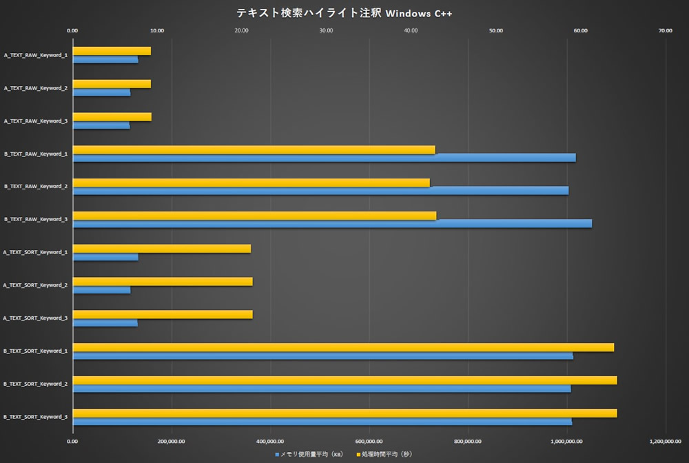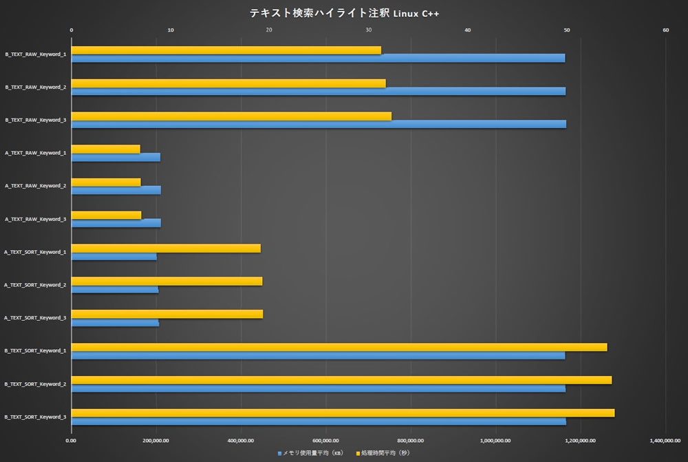 | メモリ使用量平均(KB) | 処理時間平均(秒) | |